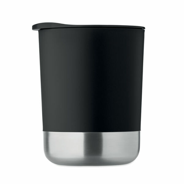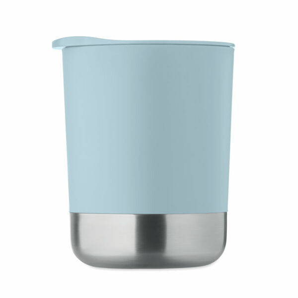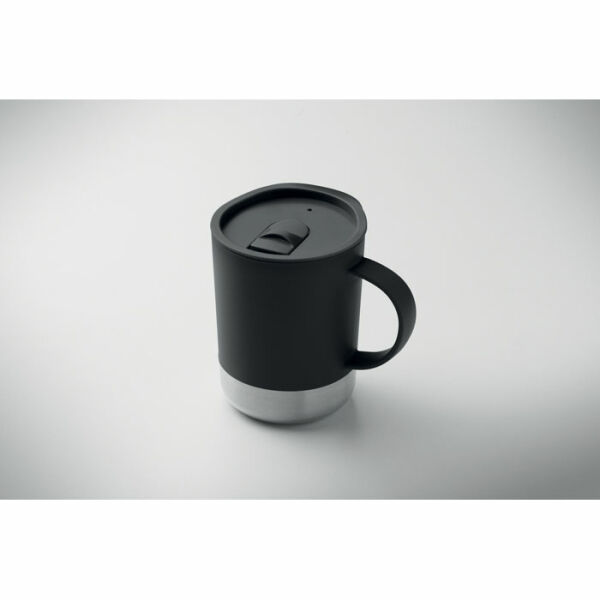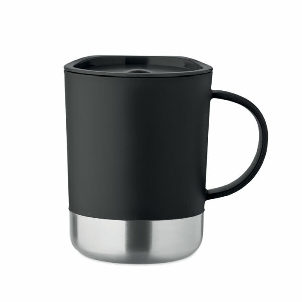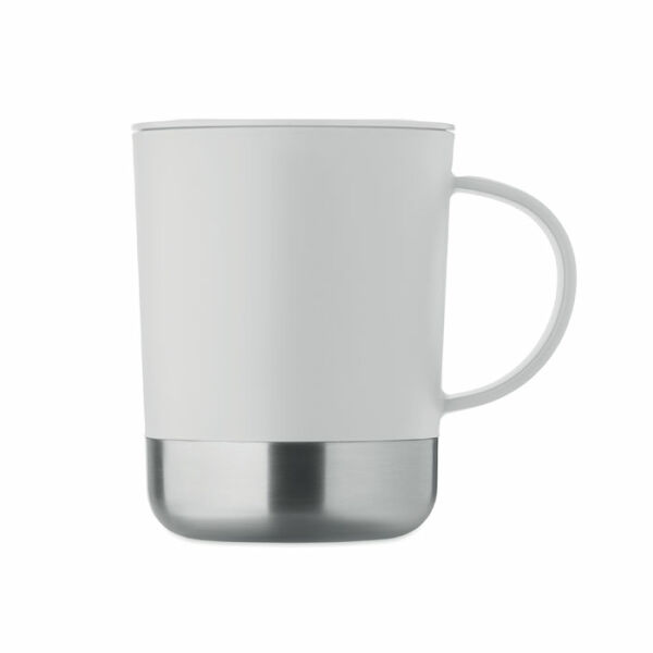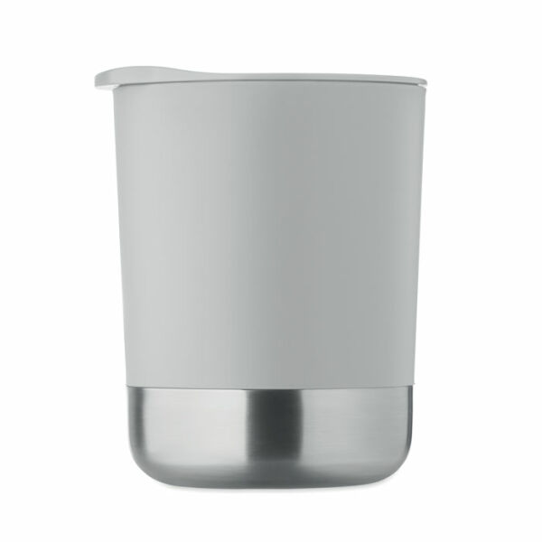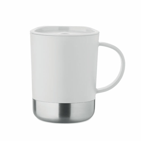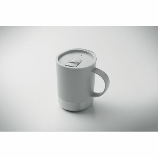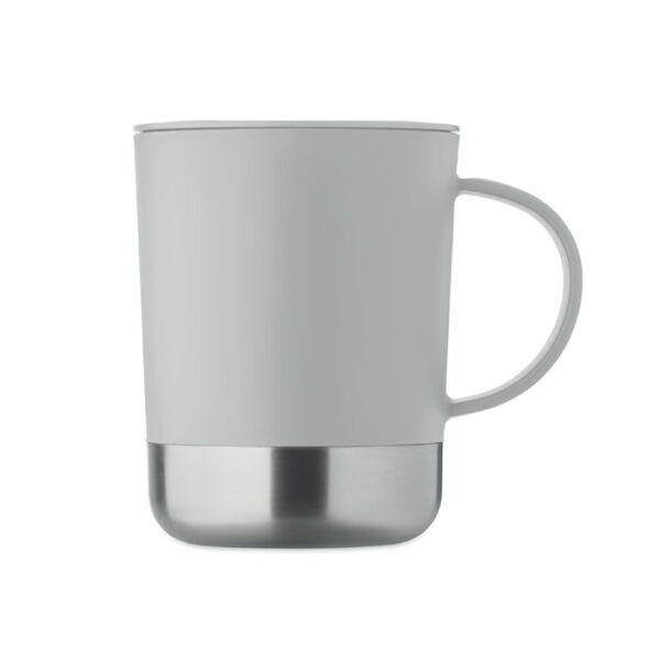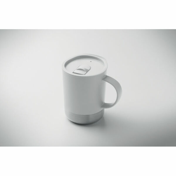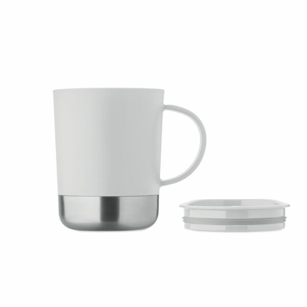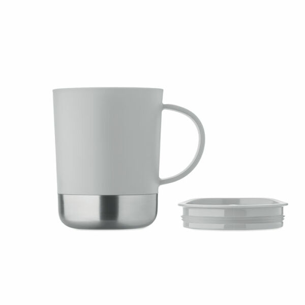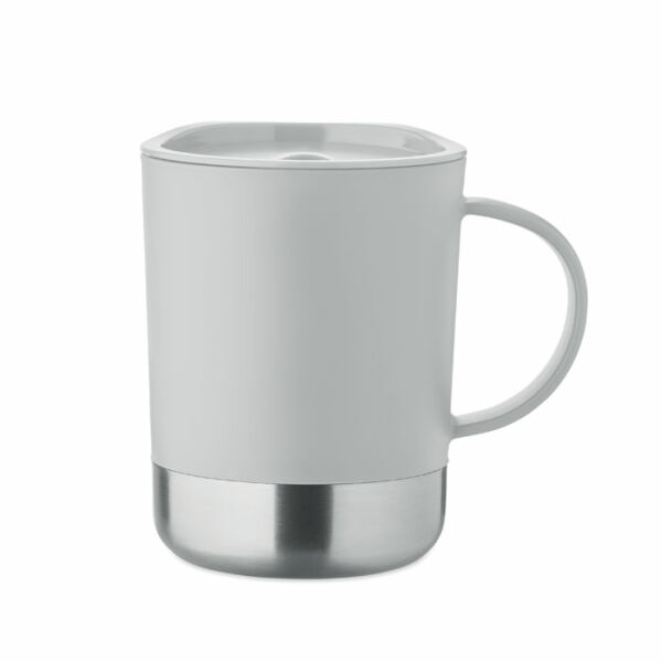 PP mok met gerecyclede roestvrijstalen bodem (90% gerecycled roestvrij staal en 10% roestvrij staal) en PP schuifdeksel. Inhoud: 300ml.